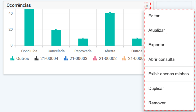 , você pode editar, duplicar ou remover essa dashboard.