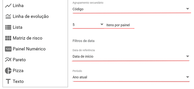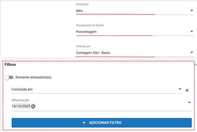 A área de filtros permite personalizar ainda mais o que será exibido no painel.