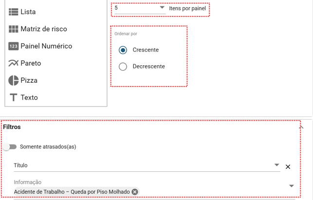 A área de filtros permite personalizar ainda mais o que será exibido no painel.