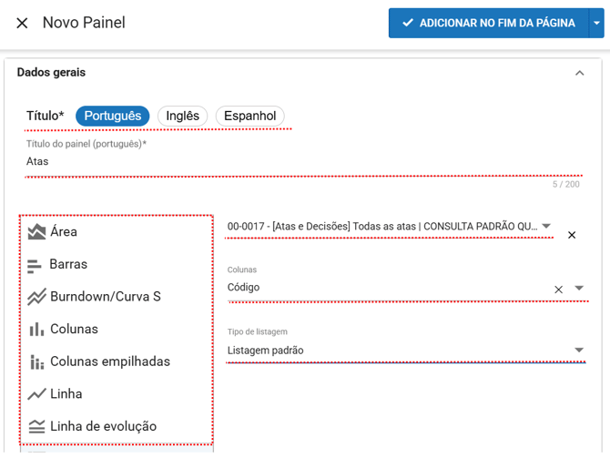 Logo no início, o campo de título permite que você nomeie o painel que está sendo criado.