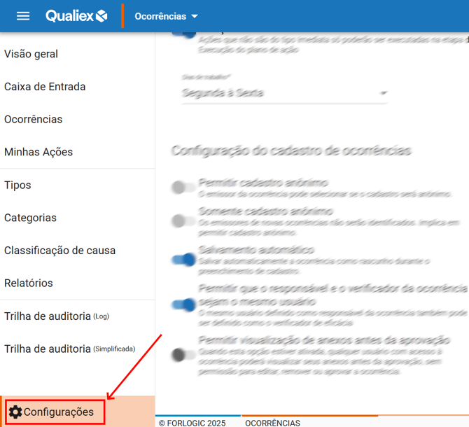 - Obrigatório identificação de causa raiz: ao habilitar será obrigatório identificar a causa raiz das ocorrências por meio das ferramentas 5 Porquês ou Ishikawa.