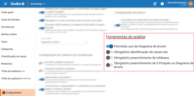 Como definir a configuração de ferramentas de análise de causa das ocorrências no Qualiex?