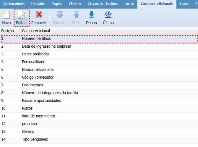 Passo a passo para editar um campo adicional