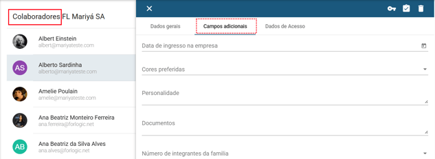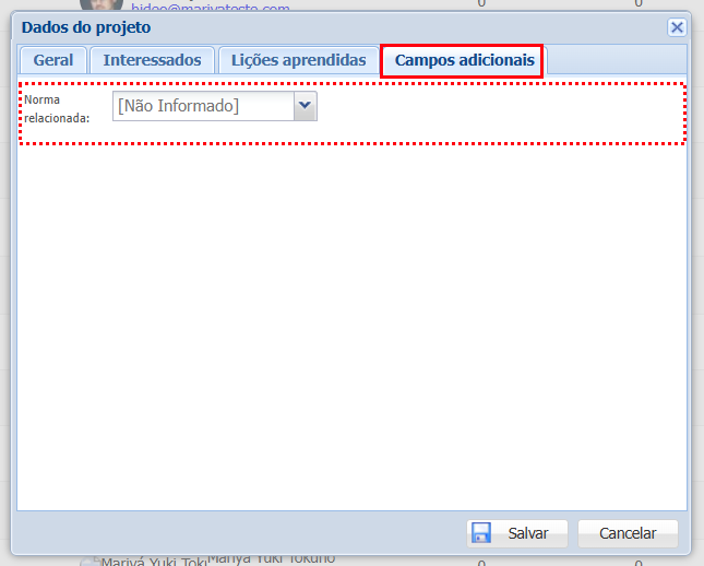 Na aba “Campos adicionais”, selecione o campo desejada e clique no ícone