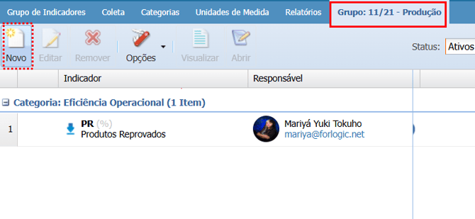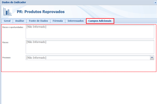 No módulo Indicators, o campo adicional será exibido quando você cadastrar um novo indicador em um grupo de indicadores.