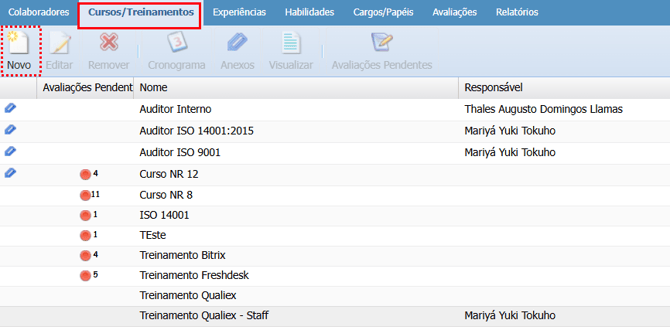 No módulo Staff, o campo adicional será exibido quando você cadastrar um novo curso ou treinamento.