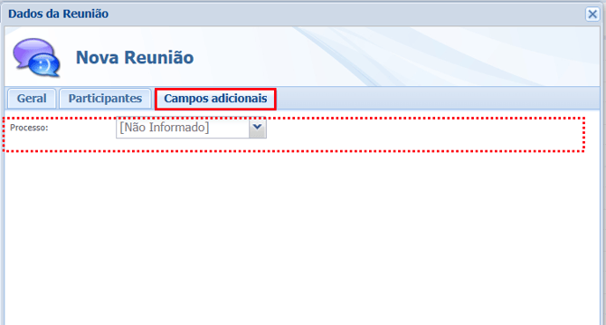 No módulo Meeting, o campo adicional será exibido quando você cadastrar uma nova reunião.