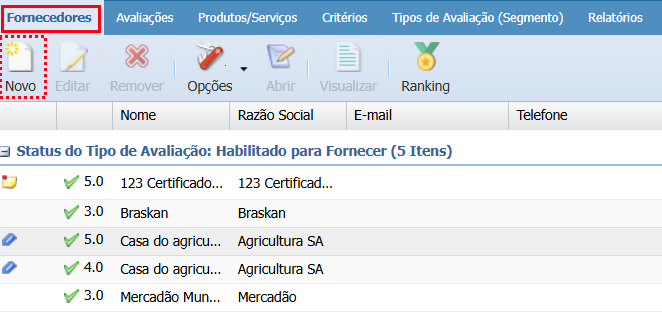 No módulo Supply, os campos adicionais serão exibidos ao cadastrar um novo fornecedor.