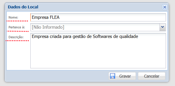 - Campo obrigatório onde você deve inserir o nome do local (por exemplo: “Financeiro”, “Produção”, “Filial SP”).