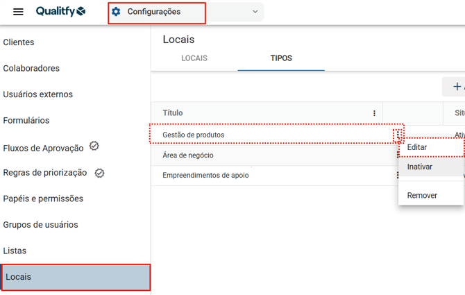 Como editar um Tipo de local no Qualitfy?