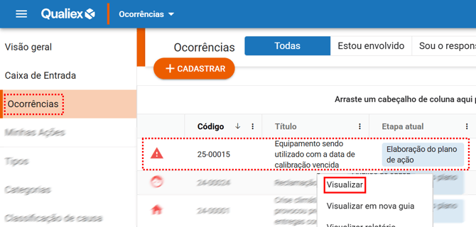 Como elaborar um plano de ação para uma ocorrência no Qualiex?