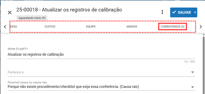 Para melhorar a comunicação das pessoas em relação a ação, é possível registrar comentários.