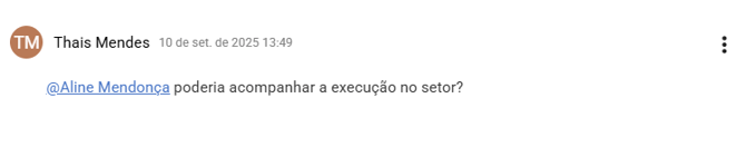 Na aba Comentários conseguimos deixar mensagens para outros colaboradores, que serão notificados para visualizar dentro do sistema.