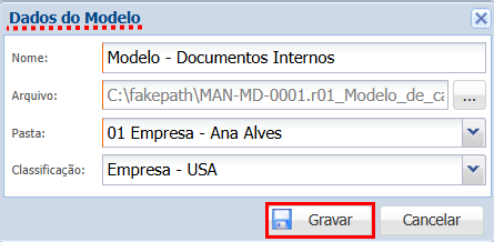 Arquivo: selecione, em seu computador, o arquivo que será cadastrado como modelo;