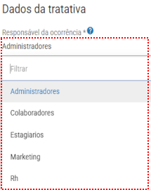 Esse recurso é ideal para empresas em que a definição do responsável individual só ocorre após a aprovação da ocorrência. Assim, você pode configurar o grupo que ficará responsável temporariamente e aguardar que um dos membros assuma a tratativa.