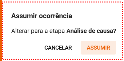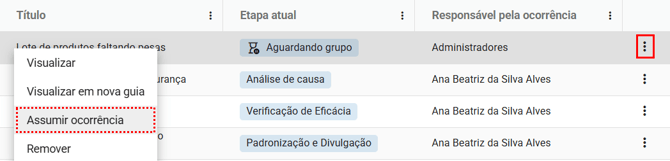 Se você for integrante do grupo responsável, verá a opção "Assumir ocorrência".
