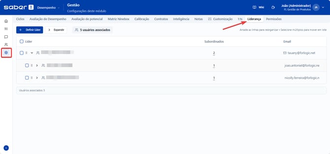 No menu lateral esquerdo, clique em Gestão e depois na aba Liderança.
