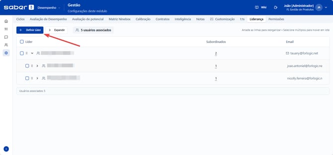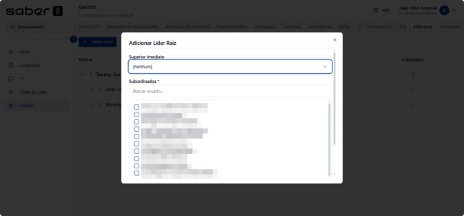 Para configurar lideranças: É necessário ter permissão de gestão no módulo de Desempenho (normalmente utilizado pelo RH ou Administradores).