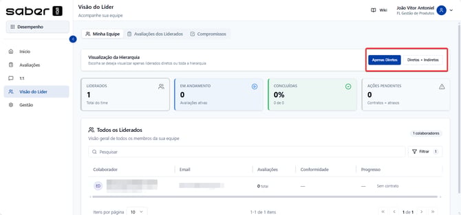 Para visualizar a Visão do Líder: A aba aparecerá automaticamente para qualquer usuário que tenha sido cadastrado como líder de pelo menos uma pessoa na fase de configuração.