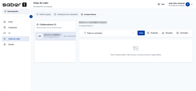 Preparação para 1:1: Antes de fazer uma reunião de acompanhamento com seu liderado, abra a aba Compromissos dele. Checar se ele está entregando o que foi combinado é o melhor ponto de partida para um bom feedback!