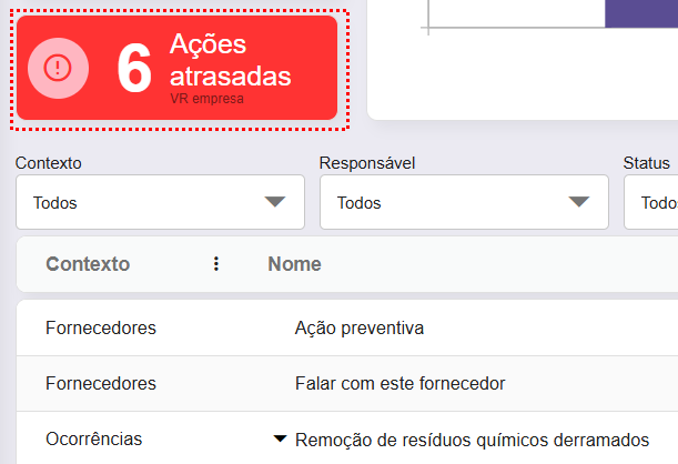 Essa visualização ajuda a identificar rapidamente quais ações demandam maior atenção e priorização, contribuindo para o cumprimento de prazos e a melhoria do desempenho do fornecedor.