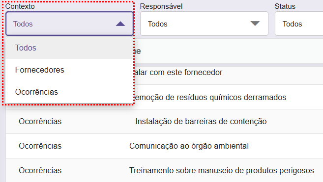 Contexto: Permite filtrar as ações de acordo com o módulo de origem .