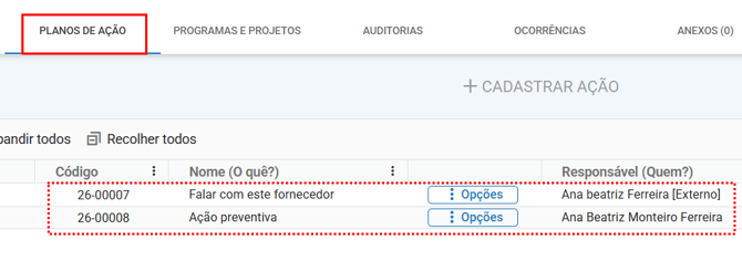 disponível ao lado de cada ação, o usuário externo é redirecionado para a aba Planos de Ação no módulo Fornecedores.