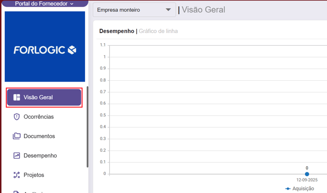 Ao acessar o portal, o usuário será direcionado para a aba "Visão Geral" no Portal do Fornecedor.