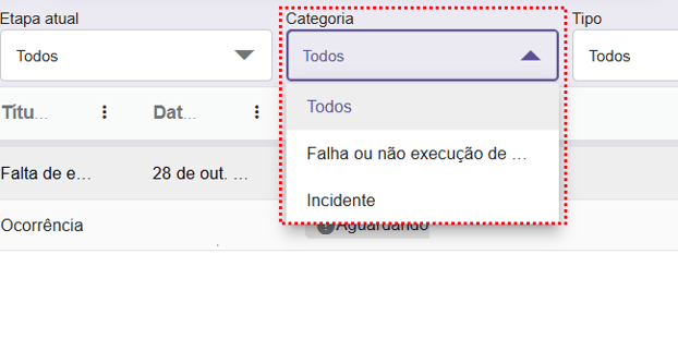 Além disso, há também a opção de filtrar por tipo de ocorrência.