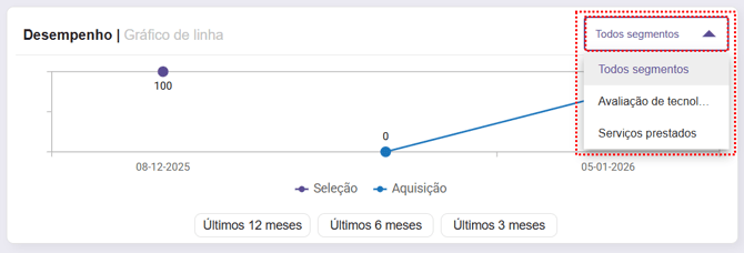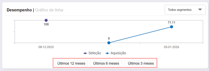 Filtro por período, selecionando intervalos específicos (por exemplo, últimos 3, 6 ou 12 meses, ou um período personalizado).