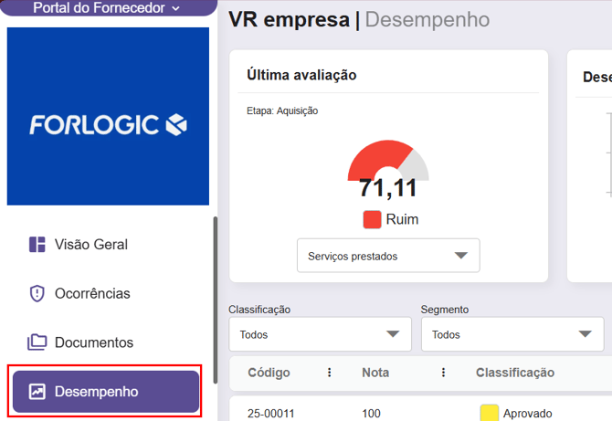 Como o Usuário Externo Visualiza o Desempenho pelo Portal do Fornecedor?