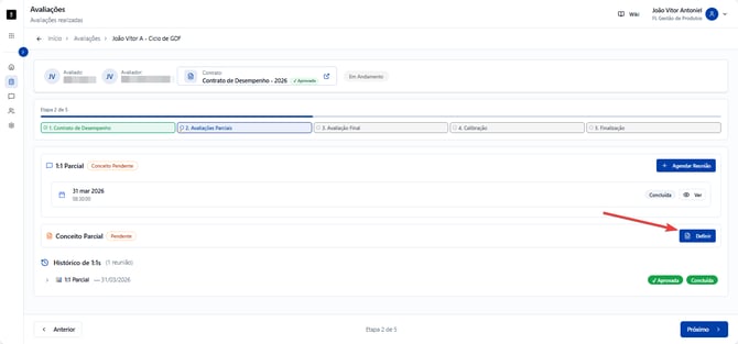 Na seção Conceito Parcial, clique no botão azul para avaliar Definir.