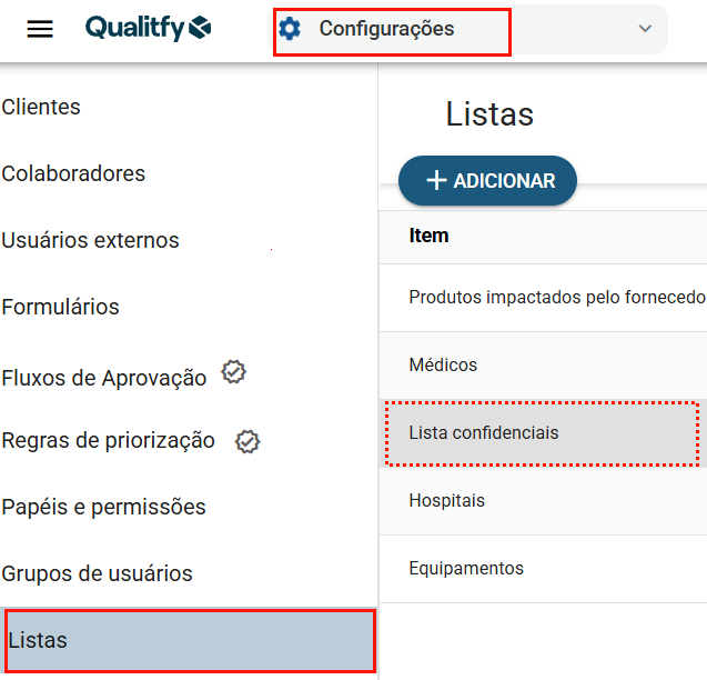 Para editar ou remover uma lista, é necessário ter permissão de “Editar” e de “Remover” Listas. Definido na aba Configurações > Papel e permissões.