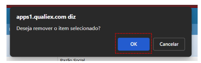 Será exibido um alerta perguntando se você realmente deseja remover o cliente. Clique em "Ok" para confirmar.