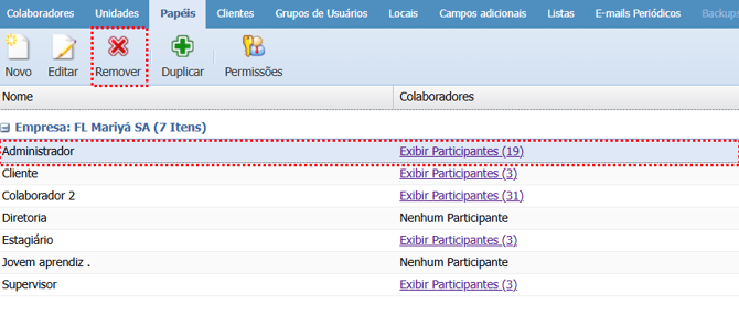 Não é possível remover um papel caso existam colaboradores vinculados a ele. Primeiro, desvincule todos os colaboradores desse papel e, somente depois, realize a remoção do papel no sistema.