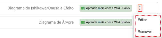 Para escolher a ferramenta clique em , e clique na opção "Diagrama de Ishikawa/Causa e efeito".
