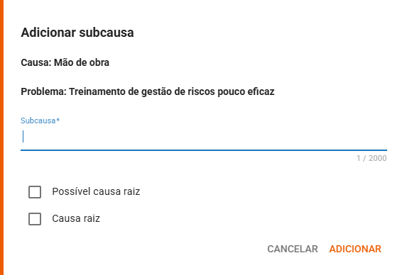 • Causa: categoria onde está sendo adicionada a subcausa.