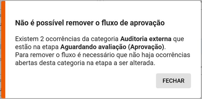 Só é possível desvincular o fluxo quando não houver ocorrências abertas na etapa que será alterada.
