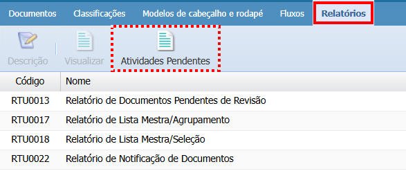 No relatório por pendência, seja por colaborador ou por grupos de usuários, a estrutura e as informações exibidas na geração do relatório serão as mesmas apresentadas anteriormente para a visualização do relatório de notificações de documentos.