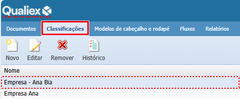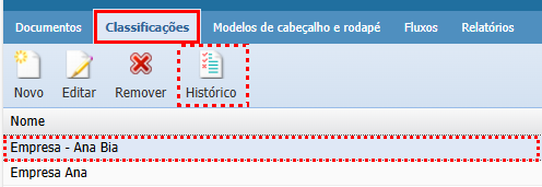 Ao acessar o módulo Docs, vá a aba de Classificação e selecione a Classificação que deseja realizar a visualização do histórico.