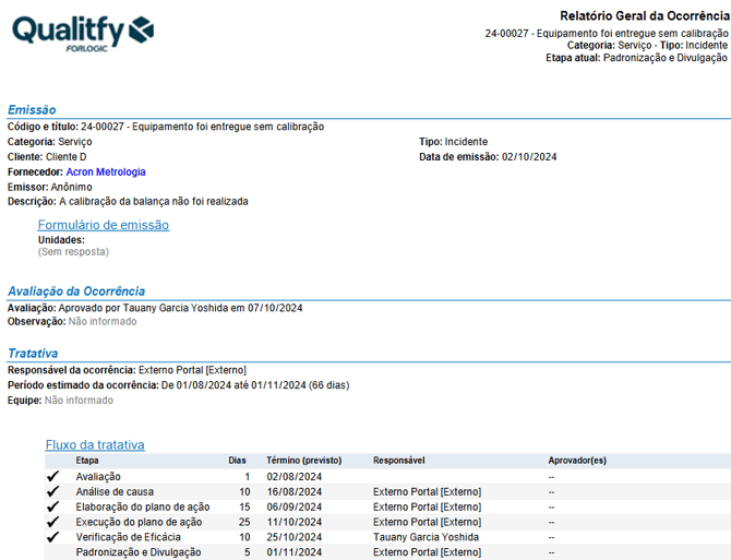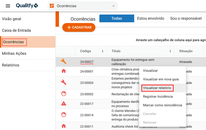 Como visualizar o relatório completo de uma ocorrência no Qualitfy?