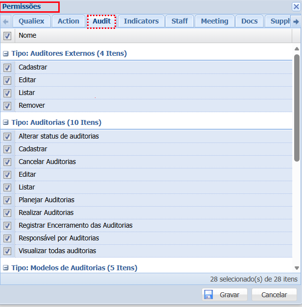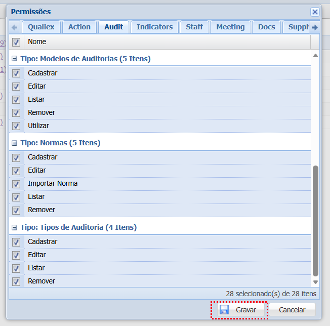 • Cadastrar: Terá permissão de cadastrar um novo tipo de auditoria;