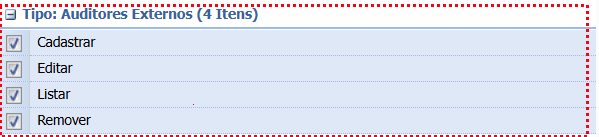 • Cadastrar: Poderá cadastrar novos auditores externos
