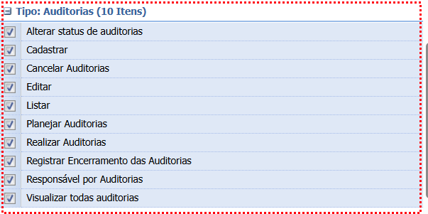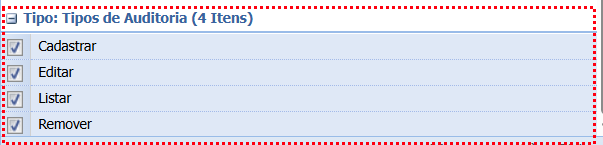 • Listar: Poderá ver os tipo de auditorias que estão cadastradas;