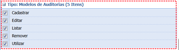 • Listar: Poderá ver os modelos de auditorias já cadastrados;