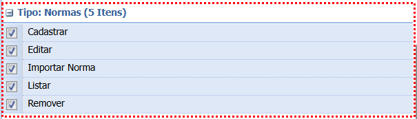 • Remover: Poderá excluir uma norma que já esteja cadastrada.