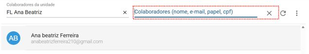 para localizar o colaborador: basta digitar o nome, pressionar Enter para pesquisar ou encontrá-lo diretamente na lista de colaboradores e selecionar o nome desejado.