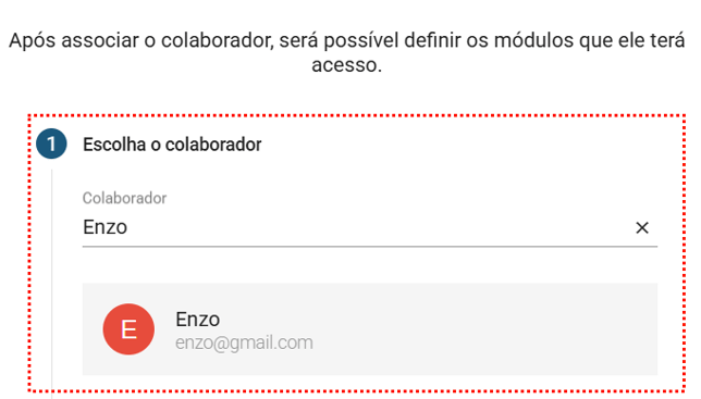 - Escolha o colaborador: Localize pelo nome do colaborador, informe o nome e clique na usuário desejado.