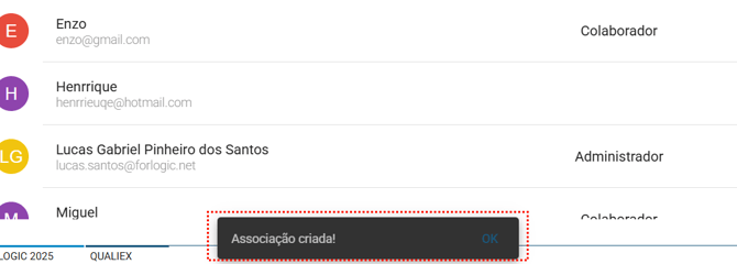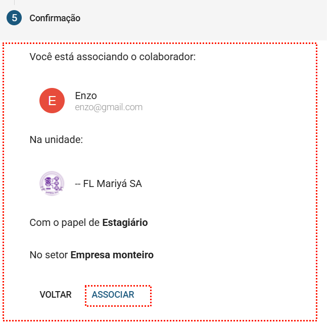 - Confirmação: Exibe as informações de associação, após confirmar os dados clique em Associar.