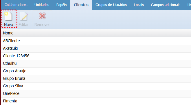 Para cadastrar um novo cliente, é necessário ter permissões de “Listar” e “Cadastrar” cliente. Definido na aba Papéis > Configurações Clássicas.